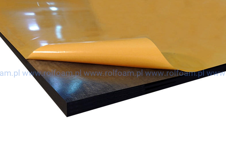 Arkusz 1000 x 2000 mm o grubości 20 mm, czarny, samoprzylepny.