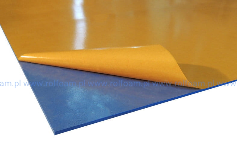 Arkusz 1000 x 2000 mm o grubości 2 mm, niebieski, samoprzylepny.
