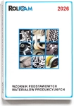 Wzornik podstawowych materiałów produkcyjnych zawiera próbki materiałów o wymiarach 3 x 7 cm.